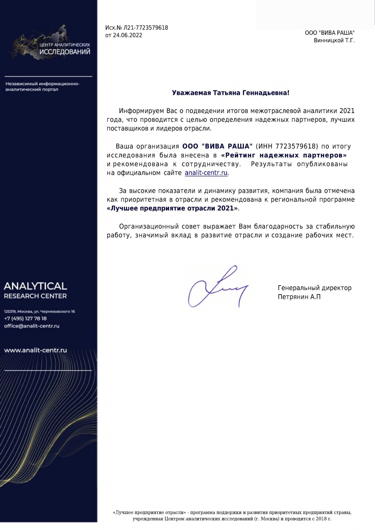 Работать с компанией VivaRussia – чистое удовольствие! Оперативность, компетентность, вежливость и, наконец, чувство юмора – отличительные черты Татьяны Винницкой и ее команды! Все поставки происходили в срок, c максимальной прозрачностью!