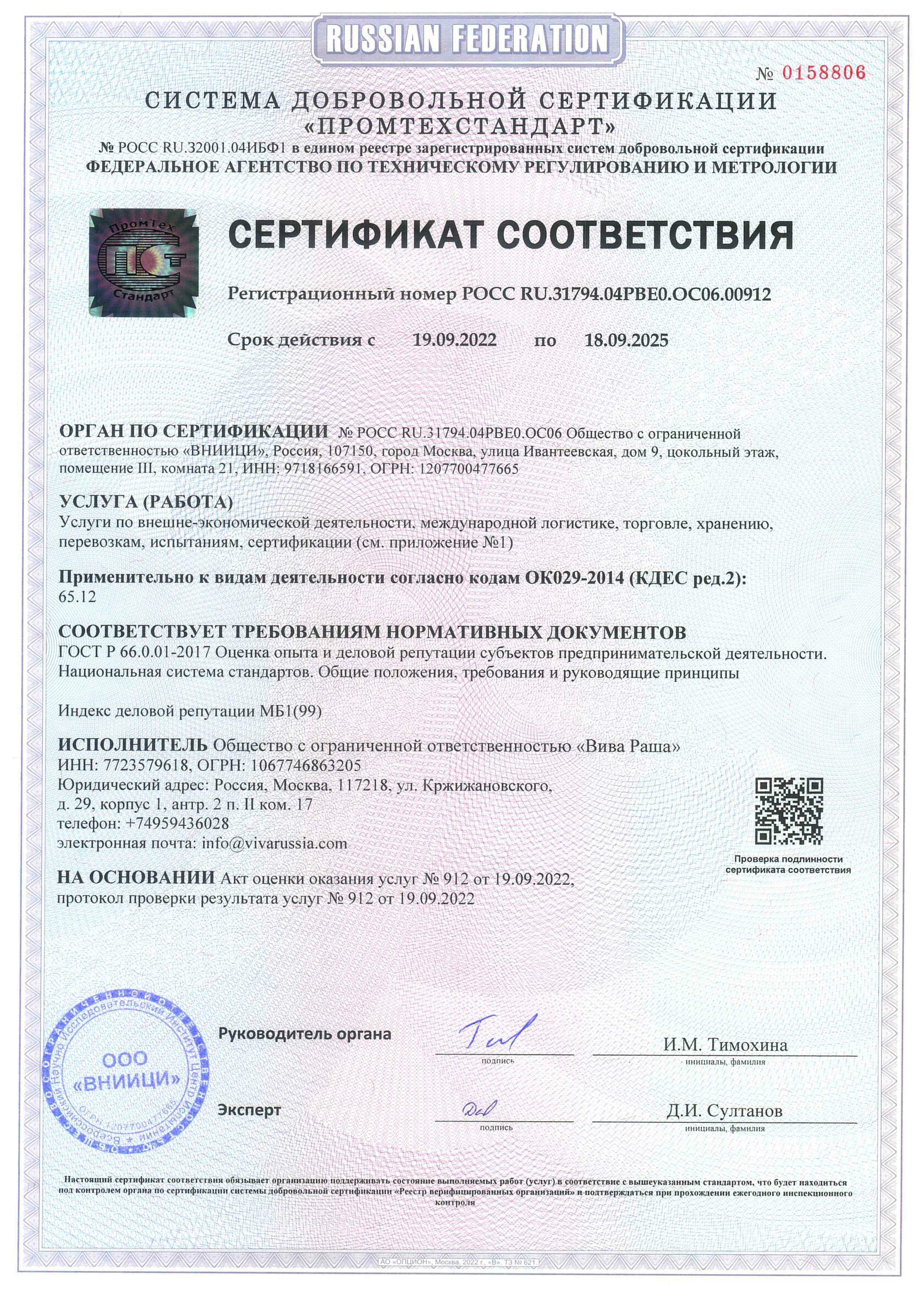 «Viva Russia» - компания с низким уровнем риска (НУР)
